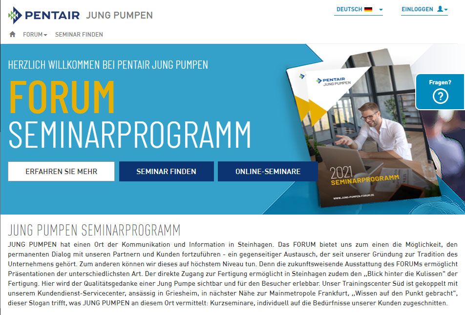 Online seminars and CRM interface at Jung Pumpen GmbH